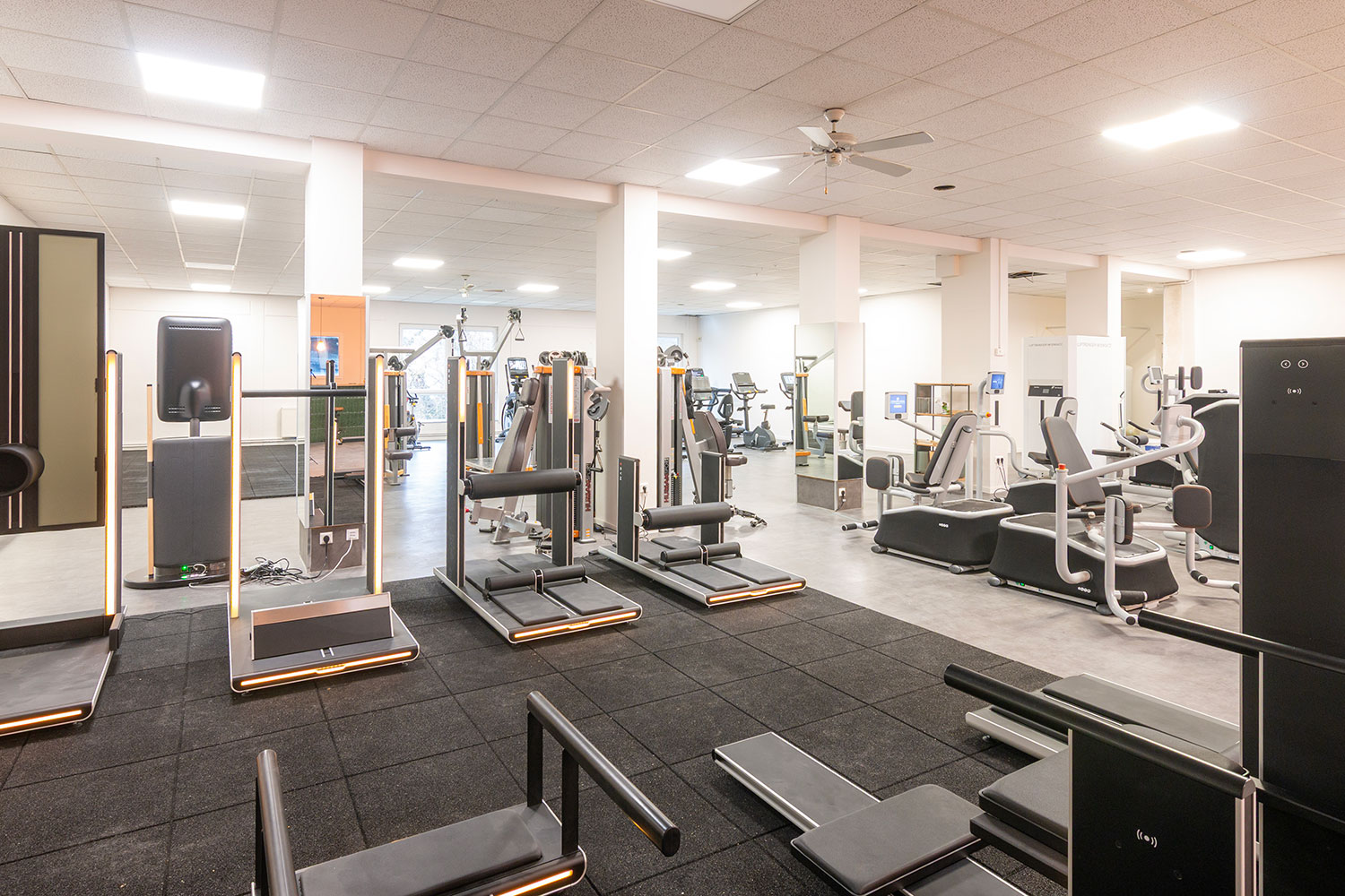 Auf einer Gesamtfläche von 880 qm bieten wir dir eine professionelle Infrastruktur für jedes Trainingsziel. Unser Raumangebot umfasst einen modernen EGYM Bereich, bestehend aus einem 8er Zirkel sowie sieben freistehenden Geräten und den EGYM Smart Flex Bereich für gezieltes Muskellängentraining. Für Gruppenfitness steht ein 112 qm großer Kursraum zur Verfügung. Ein separater Hantelraum, eine Cardio Zone sowie eine kleine Functional Area ergänzen unser vielseitiges Angebot für ein zielgerichtetes Einzeltraining. Zur Erfolgskontrolle steht dir ein System von Tanita für die professionelle Körperanalyse zur Verfügung, mit dem du deinen Fortschritt regelmäßig und selbstständig überprüfen kannst.