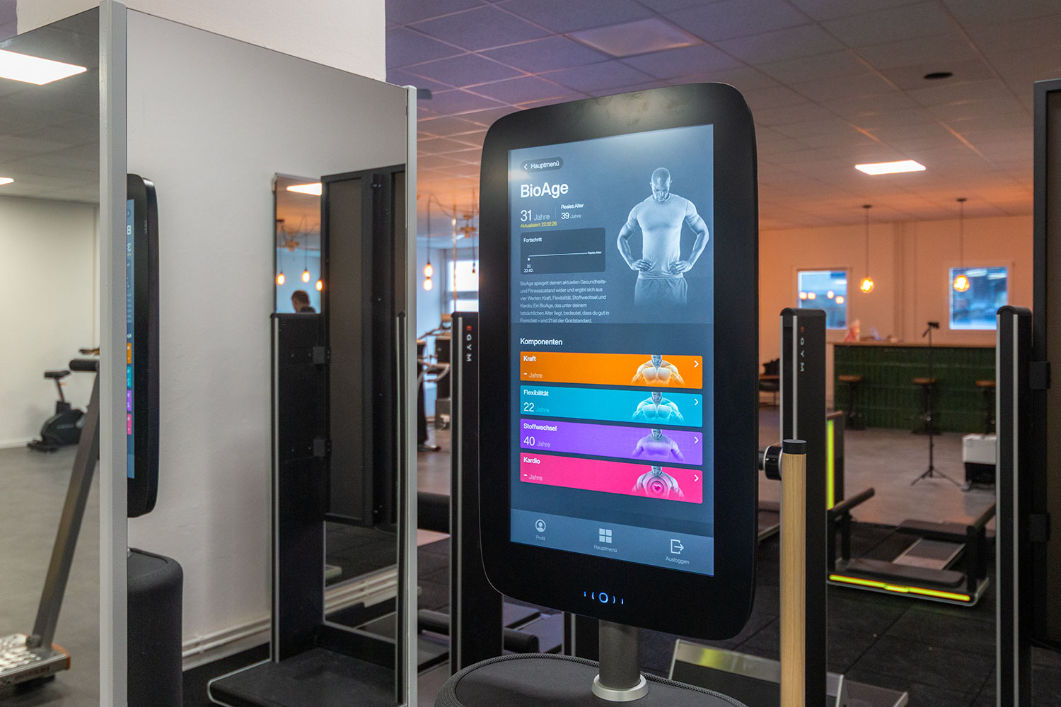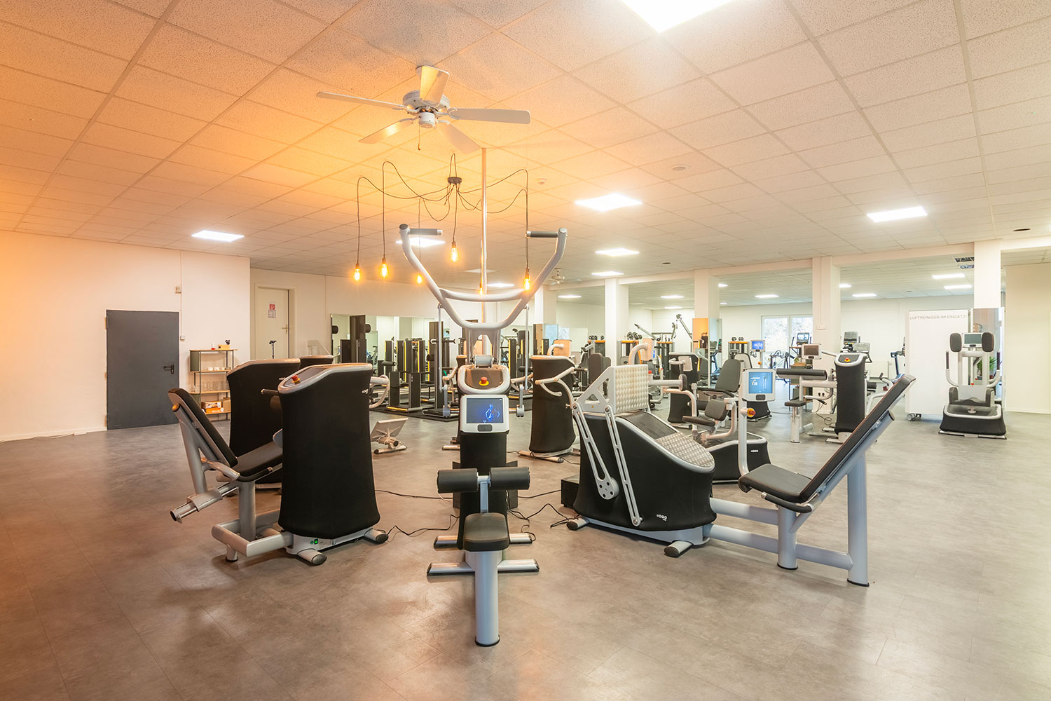 Auf einer Gesamtfläche von 880 qm bieten wir dir eine professionelle Infrastruktur für jedes Trainingsziel. Unser Raumangebot umfasst einen modernen EGYM Bereich, bestehend aus einem 8er Zirkel sowie sieben freistehenden Geräten und den EGYM Smart Flex Bereich für gezieltes Muskellängentraining. Für Gruppenfitness steht ein 112 qm großer Kursraum zur Verfügung. Ein separater Hantelraum, eine Cardio Zone sowie eine kleine Functional Area ergänzen unser vielseitiges Angebot für ein zielgerichtetes Einzeltraining. Zur Erfolgskontrolle steht dir ein System von Tanita für die professionelle Körperanalyse zur Verfügung, mit dem du deinen Fortschritt regelmäßig und selbstständig überprüfen kannst.